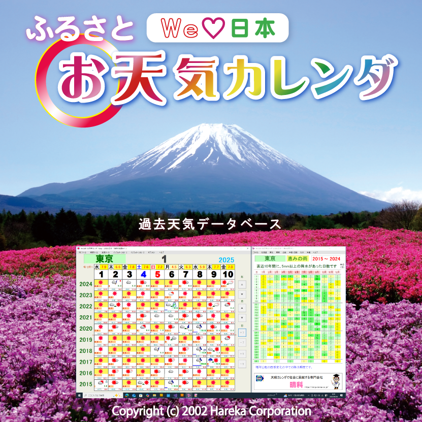 ふるさと お天気カレンダ 過去天気データベース。富士山パッケージデザイン。 |
