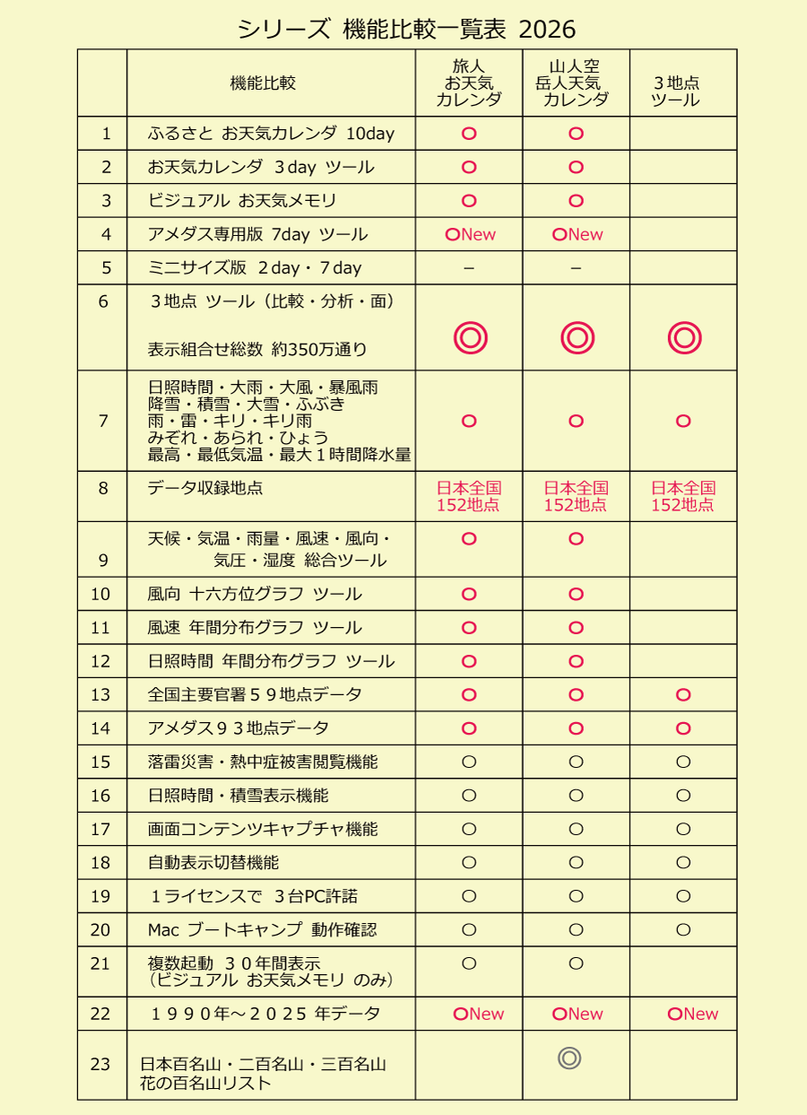 全国 主要官署 59 地点 & Amedas 93地点 データ収録 |